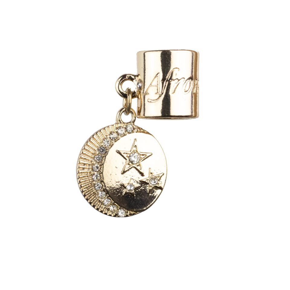 This 1st-gen Afromations Hair Charms is coated with in a luxurious gold plating and is designed to fit onto any medium & large sized braids, dreadlocks, twists or coils.