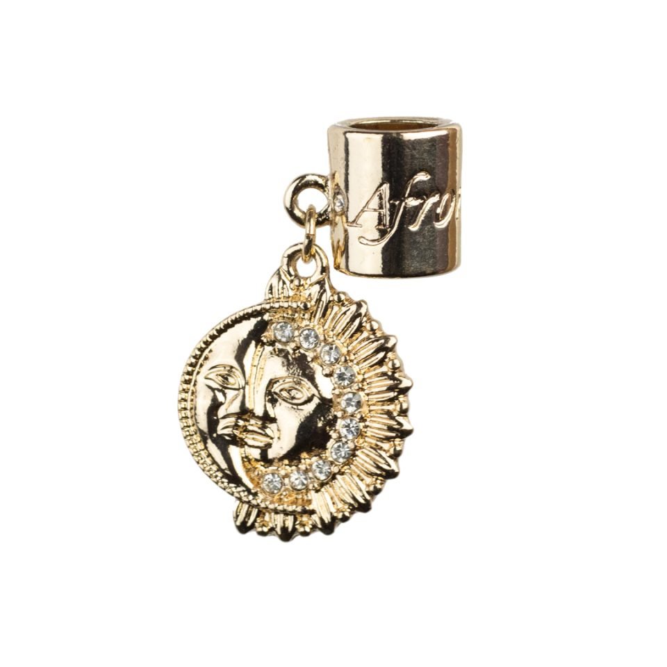 This 1st-gen Afromations HairCharms is coated with in a luxurious gold plating and is designed to fit onto any medium & large sized braids, dreadlocs, twists or coils.